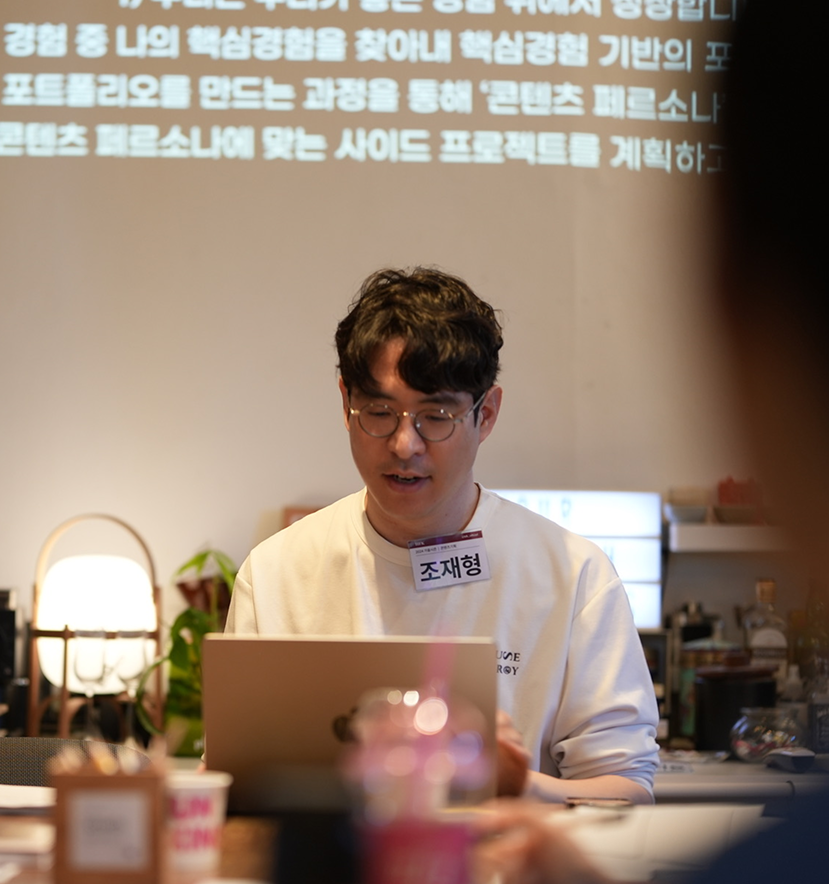 책 <하우투딴짓>의 저자로 뵀던 재형님을 파트너로 다시 뵙게 되었습니다. 당시 북토크에서도 재형님의 사이드 프로젝트 포트폴리오를 살짝 보여주셨었는데요. 많은 멤버들에게 인상깊었던 장표였습니다. 장표 속 포트폴리오를 직접 기획해볼 수 있는 자리를 만들게 되어 설렙니다.