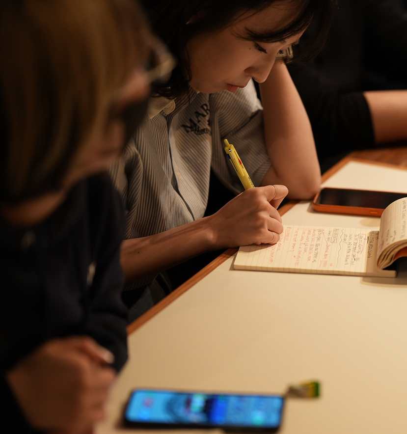 각자의 비즈니스 기획안을 공유하고, 서로의 사고 과정과 배운 점을 되짚는 디브리핑으로 경험을 내재화합니다.