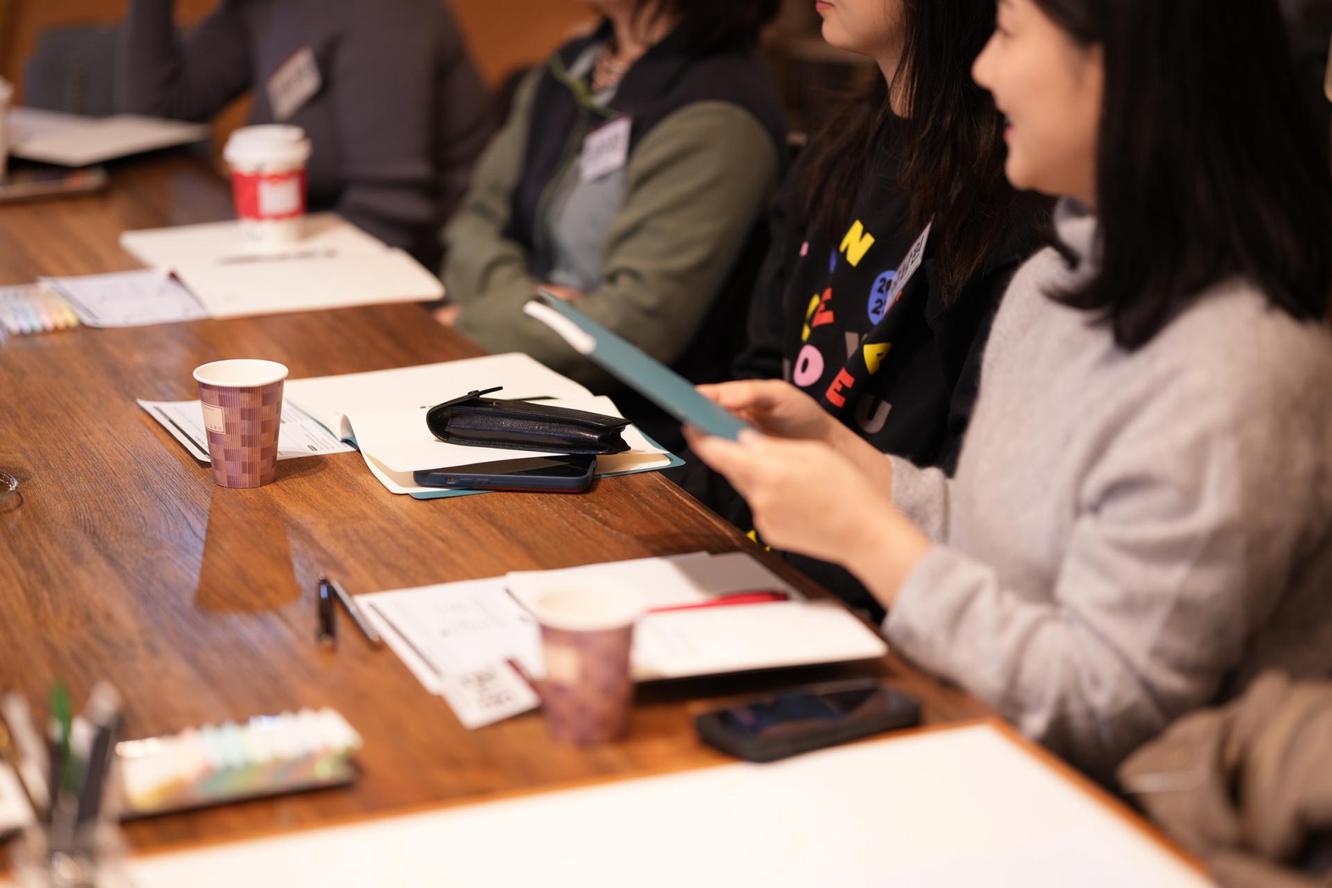 1 최대 15명의 멤버들이 함께하며, 파트너는 퍼실리테이터로 토론을 이끕니다.