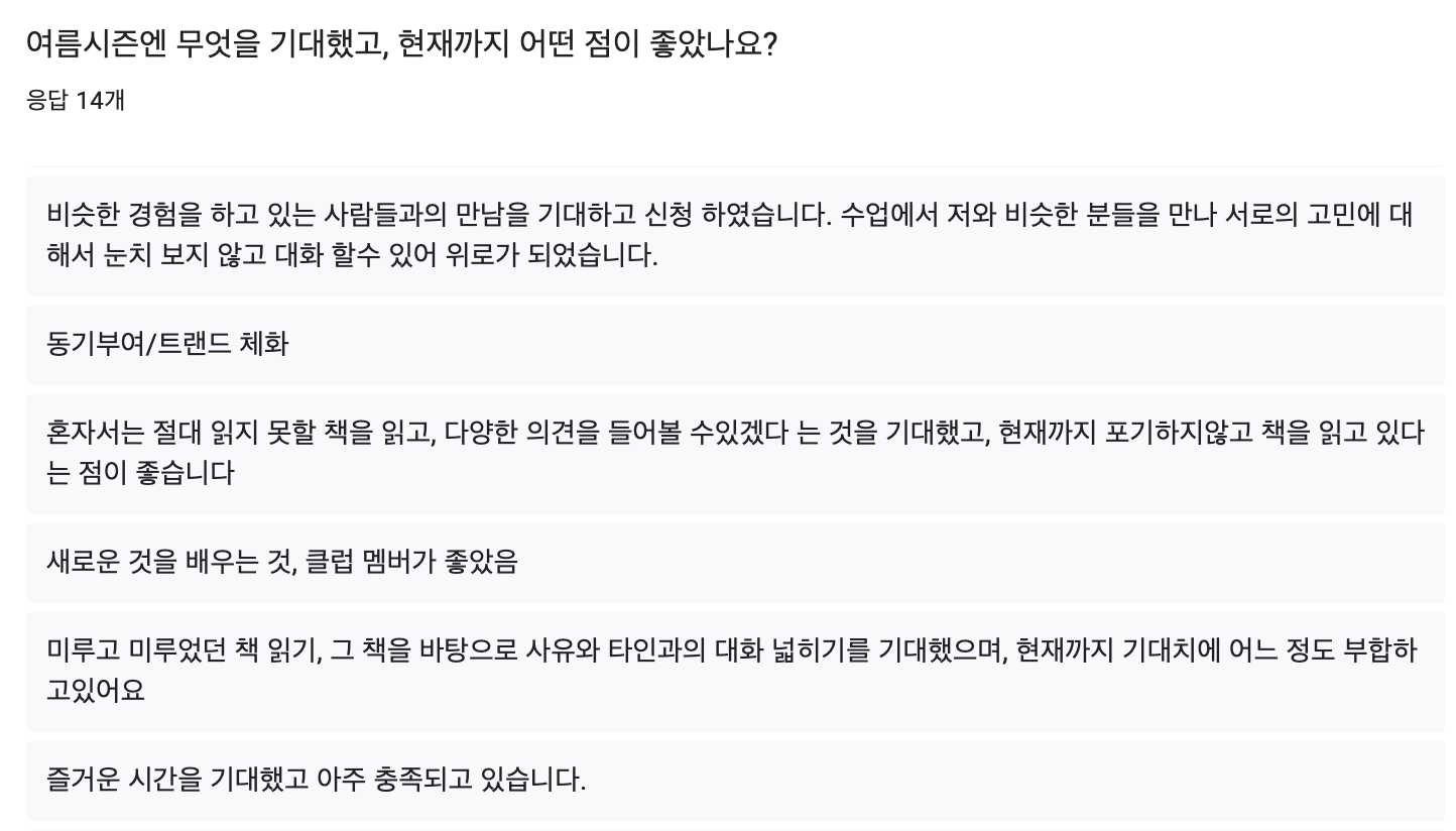 여름시즌 중간 서베이에 답변 남겨주셔서 정말 감사합니다! 솔직하게 남겨주신 의견들 덕분에 여름시즌이 끝나기 전 HFK가 열심히 해야할 것은 무엇일지 되새기는 계기가 되었습니다. 파트너와도 피드백을 주고 받으며, 남은 시즌의 방향성을 다시 잡았고요.